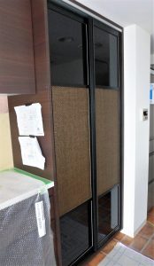 某ご自宅・キッチンの収納棚戸として製作したアルミ建具です。