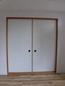 既存の枠と違ってプラスチック製になりますが、新規で襖(ふすま)を取付けてきました。