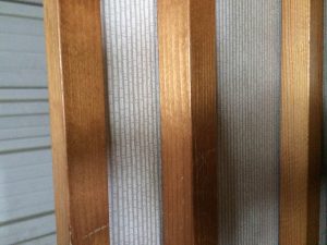 写真は、木製のフレーム材(スプルース)ですが、経年変化により変色しています。